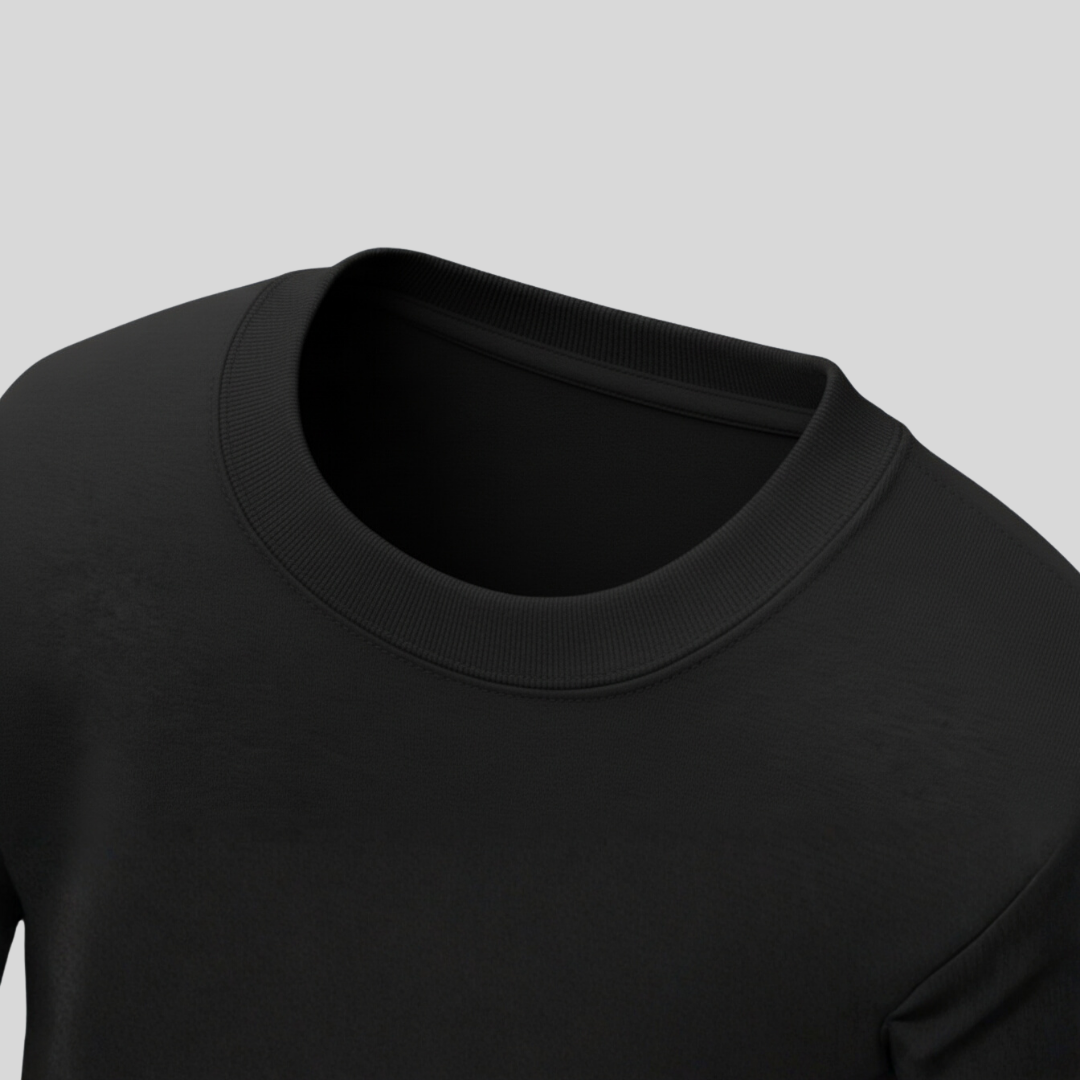 To deliver unmatched bounce and next-level softness, we engineer our fabric with hollow-tube yarns—tiny air-filled channels that create a cushioned feel no heavy, scratchy cotton can touch. Advanced fabric technology, built for the most advanced black T-shirt on the planet.